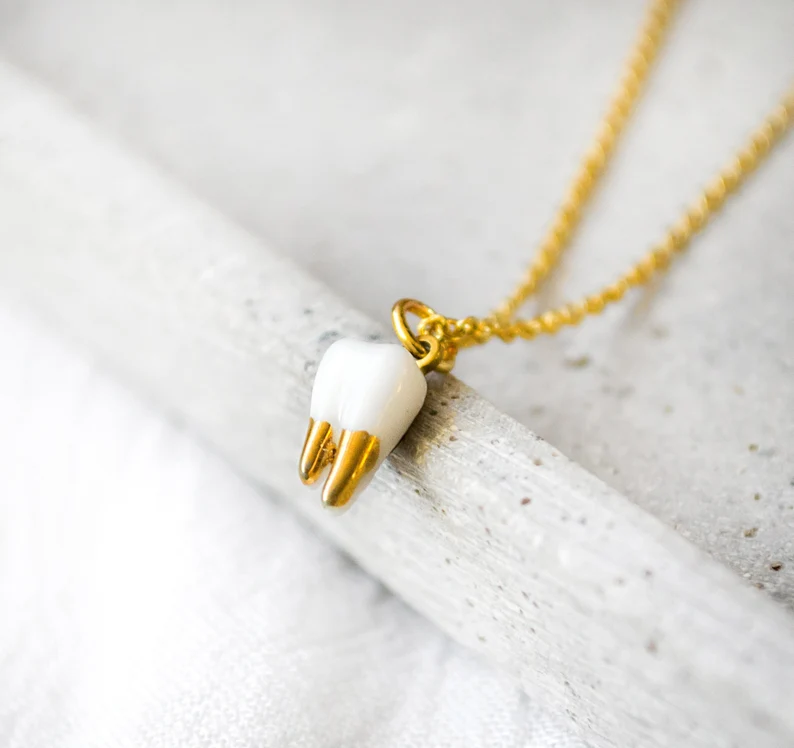 Add a touch of charm to anyone’s look with a tooth designed necklace. A gift for dental professionals who love unique jewellery Gold Tooth Necklace